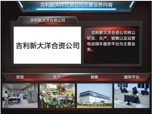 吉利新大洋公司將以研發(fā)、生產(chǎn)、銷售以及運(yùn)營(yíng)電動(dòng)微車服務(wù)平臺(tái)為主要業(yè)務(wù)。公司的管理總部、銷售總公司、純電動(dòng)汽車研發(fā)中心、城市微行電動(dòng)汽車租賃公司以及年產(chǎn)30萬(wàn)臺(tái)的生產(chǎn)基地全部將設(shè)在寧海,在以城市微型純電動(dòng)車為主要產(chǎn)品的基礎(chǔ)上,繼續(xù)研發(fā)更高技術(shù)含量的產(chǎn)品。