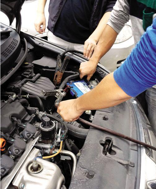 然后將應(yīng)急電源線拔去,電池安裝完成,發(fā)動(dòng)機(jī)啟動(dòng)通電1分鐘。