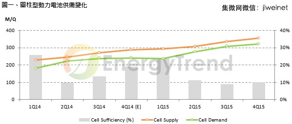TrendForce旗下綠能事業(yè)處EnergyTrend研究經(jīng)理呂理舜表示,隨著環(huán)保意識的興起,電動自行車與電動汽車在市場的普及度逐漸增加,亦帶動圓柱型動力電池在移動載具需求將從去(2014)年的1.11億顆成長至今(2015)年1.45億顆,年成長30%;而整體圓柱型動力電池需求將從去年的8.82億顆成長至今年的11.71億顆,年增率為32%。