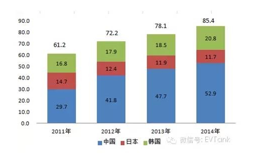 3月31日,研究機構(gòu)EVTank發(fā)布了《2014年度小型鋰離子電池研究報告》,數(shù)據(jù)顯示,2014年全球小型鋰離子電池出貨量達到85.4億只,遠(yuǎn)高于其他機構(gòu)統(tǒng)計數(shù)據(jù)(注:大部分機構(gòu)統(tǒng)計數(shù)據(jù)為50億只左右)。