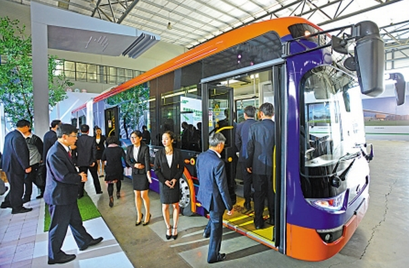 超級(jí)電容儲(chǔ)能式現(xiàn)代電車昨下線
