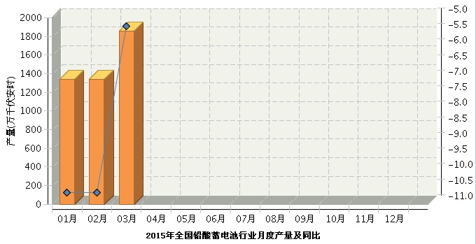 核心提示:根據國家統(tǒng)計局公布數據,2015年1~3月全國鉛酸蓄電池行業(yè)累計完成產量同比增長-11.59%。其中:3月份完成產量同比增長-5.27%。