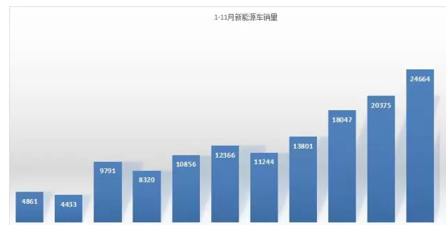 11月的新能源車銷量24664臺,同比14年11月的7251臺增長2.4倍。從8月以來的新能源車銷量進(jìn)入拉升軌跡,近幾個月都是月度環(huán)比增長4000臺左右水平,市場熱度快速升溫。