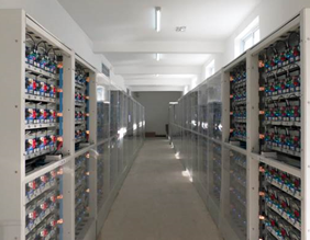 超級電容器響應速度快,循環(huán)次數多,壽命長,功率大,因此非常適合于風電場的短期功率波動 平抑。Maxwell公司的BMOD0130 P056 B03模塊,額定電壓為56V,容量為130F,運行 壽命長達20年,其外形設計非常適合于大規(guī)模應用的接線布置,此外還具備完善的報警保護機制,因此被國電公司選為其示范項目的主要儲能設備。該項目使用了Maxwell公司的1152個BMOD0130 P056 B03模塊,總容量為1MW × 2minutes,為目前世界上規(guī)模最大的風電場超級電容器儲能系統(tǒng)。該系統(tǒng)有效 地彌補了鋰電池在平抑風電場瞬時大功率波動方面的不足,平滑了風電場的出力,使之符合并網的接入要求。
