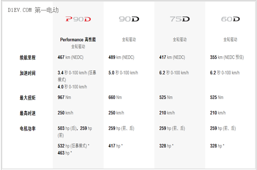 高配車型P95D上雙電機(jī)四驅(qū),單速變速箱、全輪驅(qū)動(dòng)的傳動(dòng)系統(tǒng)配置在MODEL X 60D依然沿用,最大的不同是減少了部分電池,MODEL X 60D60kWh電池組續(xù)航355公里,相當(dāng)正常燃油車的70%左右。