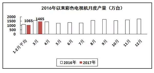 家用視聽行業(yè)主要產(chǎn)品產(chǎn)量繼續(xù)下降。一季度,生產(chǎn)彩色電視機(jī)3600萬臺(tái),同比下降5.8%,其中液晶電視機(jī)3350萬臺(tái),下降9.1%;智能電視2310萬臺(tái),增長2.1%,占彩電產(chǎn)量比重為64.2%。出口交貨值同比增長9.8%,其中3月份增長11.8%。