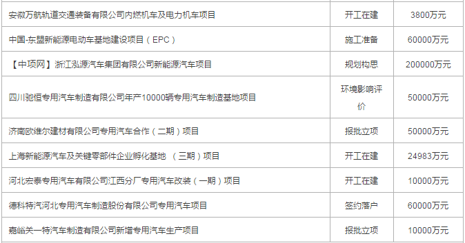 2017年8月份國內(nèi)擬在建整車、車輛項(xiàng)目(以下為部分項(xiàng)目列表)