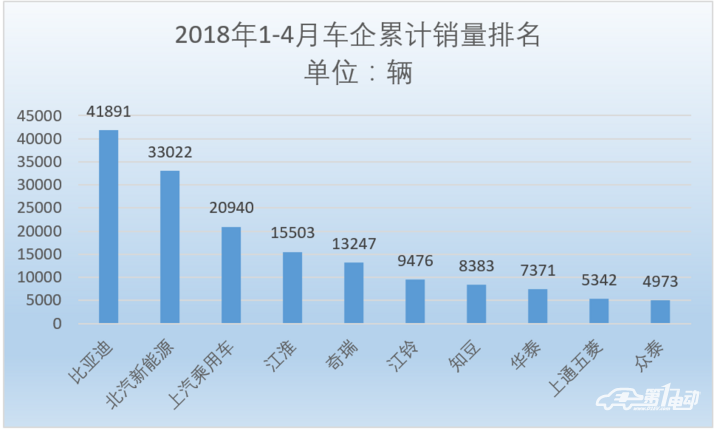 ??? 根據(jù)乘聯(lián)會數(shù)據(jù),2018年4月比亞迪新能源銷售13392輛排名第一,同比增速116%,1-4月累計銷售41891輛,是截至目前2018年銷量榜單冠軍企業(yè)。