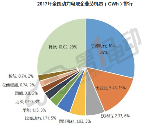 ??? 2016年比亞迪動力電池出貨量為7.35GWh,位居國內(nèi)第一、全球第二,但伴隨著寧德時代的異軍突起,其在2017年遭遇了滑鐵盧。到2017年裝機量下落到5.4GWh,在行業(yè)整體快速發(fā)展的時候,業(yè)績不增反降。