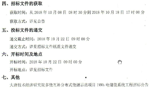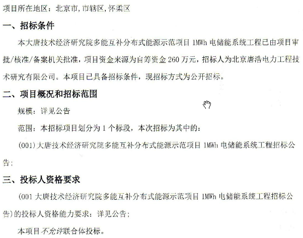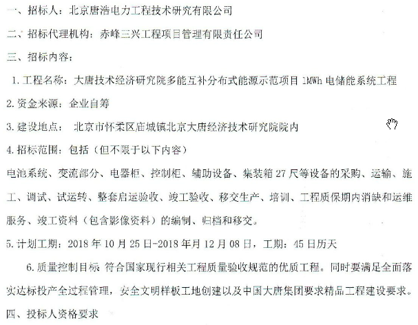 招標(biāo): 大唐技術(shù)經(jīng)濟研究院多能互補分布式能源示范項目1MWh電儲能系統(tǒng)工程招標(biāo)公告