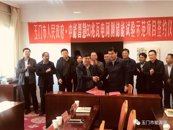 為加快玉門市新能源產(chǎn)業(yè)發(fā)展,推動儲能項目開發(fā)建設(shè),探索解決新能源棄風(fēng)棄光限電發(fā)展瓶頸,玉門市人民政府與中能智慧能源科技(上海)有限公司簽訂了60兆瓦電網(wǎng)側(cè)儲能試驗示范項目合作協(xié)議。項目總裝機(jī)60兆瓦,投資4億元,在玉門東鎮(zhèn)建設(shè)安裝儲能電池60兆瓦,配套建設(shè)附屬電力設(shè)備,接入玉門東鎮(zhèn)330千伏變電站并網(wǎng)運行。