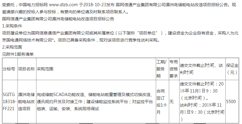 招標(biāo):國網(wǎng)信通產(chǎn)業(yè)集團(tuán)有限公司湄洲島儲能電站改造項(xiàng)目招標(biāo)公告