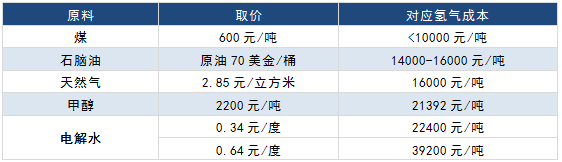 相對于石油售價,煤氣化和天然氣重整已有利潤空間,而電解水制氫成本仍居高不下。