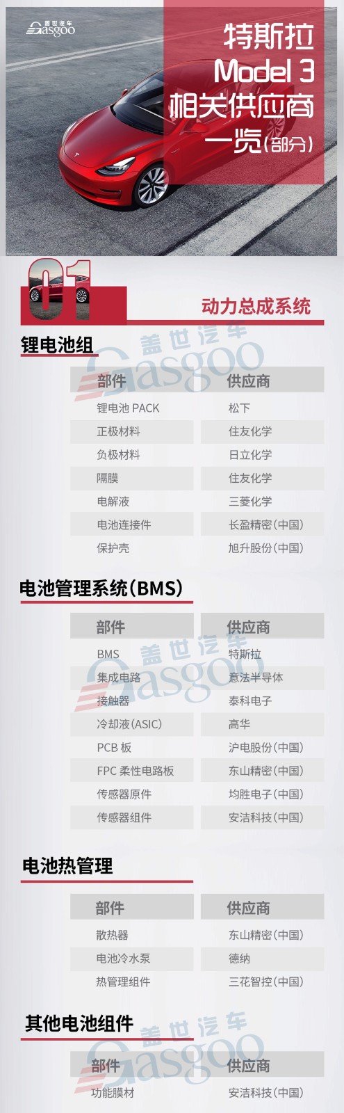 特斯拉Model 3配套供應(yīng)商一覽 哪些部件將國(guó)產(chǎn)化?