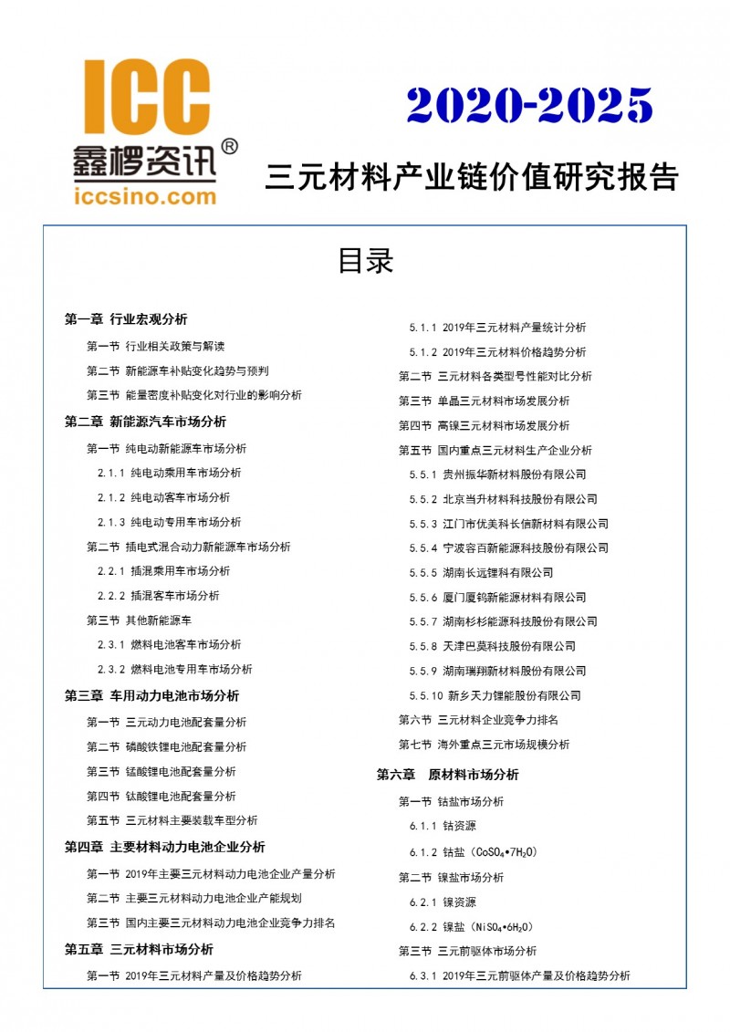 2020-2025三元材料產(chǎn)業(yè)鏈價值研究報告(目錄)