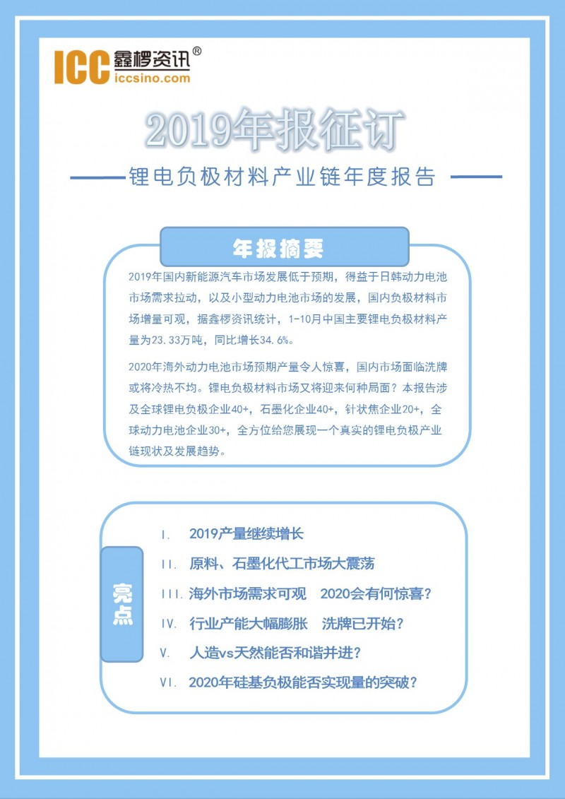 2019年鋰電負(fù)極材料年報(bào)起訂,更多內(nèi)容請(qǐng)查看詳情。