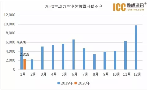 2020年1月份裝機數(shù)據(jù)出爐,統(tǒng)計裝機量2.31GWH,同比2019年1月份的4.97GWH下滑了53.5%,跌幅較大。