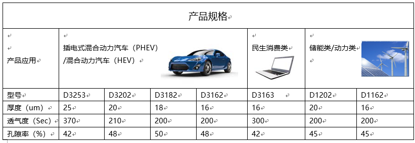 產品特點:特殊配方和拉伸技術可降低阻抗和DCIR,實現電池的高功率性能;通過工藝控制,可以有效防止PE和PP浸入電解液后的分層,抑制隔離膜起皺。