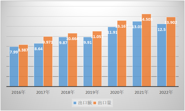 1、2022年鎳鎘蓄電池出口量為0.66億只,2021年出口量為0.47億只,同比上漲了40.43%。2022年鎳鎘蓄電池出口額為0.61億美元,2021年出口額為0.81億美元,同比減少了24.69%。