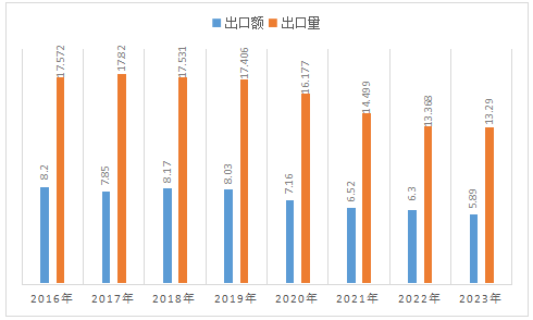四、2016-2023年中國(guó)各種電池產(chǎn)品出口額、出口量及變化趨勢(shì)(出口額單位:億美元;出口量單位:億個(gè))