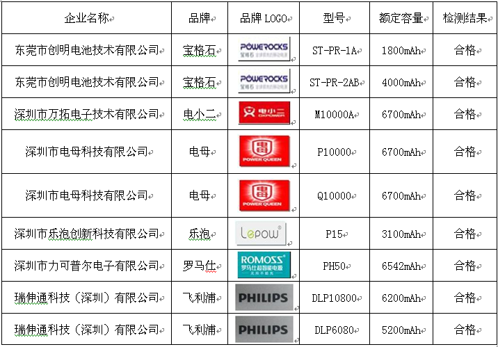 自《USB接口類移動電源》CIAPS0001-2014標(biāo)準(zhǔn)5月1日發(fā)布后,業(yè)內(nèi)制造商/品牌商紛紛表示將率先執(zhí)行標(biāo)準(zhǔn)要求,截止7月30日,依據(jù)標(biāo)準(zhǔn)進(jìn)行移動電源產(chǎn)品重新設(shè)計或改進(jìn),且首批送樣給深圳普瑞賽思檢測技術(shù)有限公司檢測(不含電芯測試),測試合格的型號清單如下: