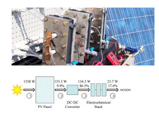 據(jù)每日科學網(wǎng)報道,由美國電力天然氣公共服務(wù)公司慷慨提供的在整個州電力高壓線桿頂上的商業(yè)太陽能電池板,其產(chǎn)生的能量可將二氧化碳和水轉(zhuǎn)換成甲酸。這一過程發(fā)生在一個電化學的電池里,包含長方形午餐盒大小的金屬板封裝可以輸送液體的通道。