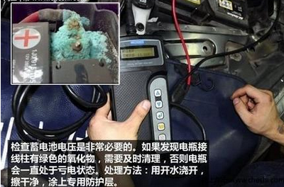蓄電池接線處有綠色的沉積物,請(qǐng)趕緊用開水沖掉,再吹干,噴上用于防止氧化層的防護(hù)劑加以保護(hù)。