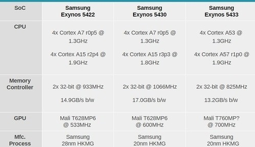 處理器:三星智能8核,Exynos 5系列