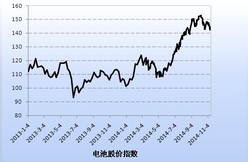 ●指數(shù)以2011年年終收盤日為基日,設(shè)為100點。指數(shù)的漲跌基本可以反映電池行業(yè)的整體趨勢,供大家參考。
