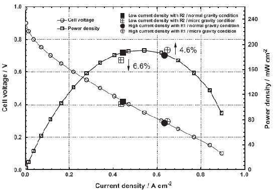 不同重力條件下PEMFC電性能變化特征