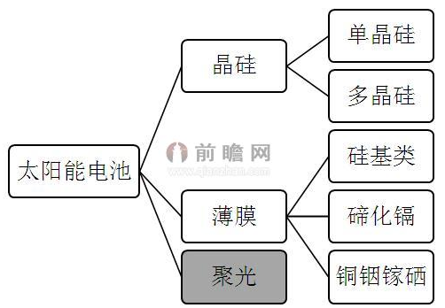 前瞻產業(yè)研究院發(fā)布的《2015-2020年中國太陽能電池行業(yè)市場前瞻與投資戰(zhàn)略規(guī)劃分析報告》數(shù)據顯示,太陽能電池主要可以分為晶硅、薄膜和聚光三類,而聚光太陽能電池雖轉化效率最高,但所采用原材料砷化鎵成本較高,主要應用于太空領域。