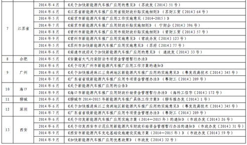 2014年11月21日,工信部發(fā)布了《新能源汽車(chē)推廣應(yīng)用示范城市(群)配套政策出臺(tái)情況公示》。據(jù)工信部統(tǒng)計(jì),截至2014年10月底,有30個(gè)城市(群)65個(gè)城市出臺(tái)了新能源汽車(chē)推廣應(yīng)用配套政策措施。