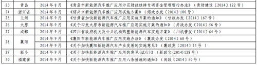 截至2014年10月底,有30個(gè)城市(群)65個(gè)城市出臺(tái)了新能源汽車(chē)推廣應(yīng)用配套政策措施。