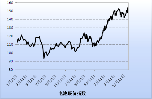 ●指數(shù)以2011年年終收盤日為基日,設(shè)為100點(diǎn)。指數(shù)的漲跌基本可以反映電池行業(yè)的整體趨勢,供大家參考。