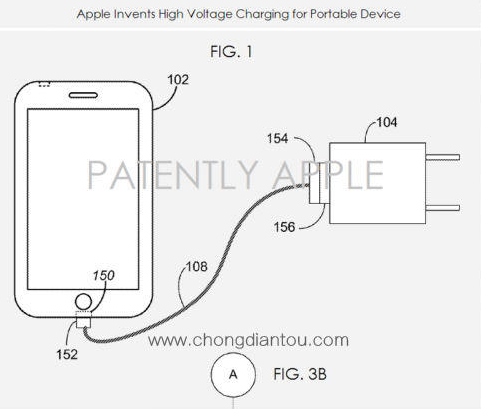 今年年初,美國專利與商標局新近公布的一項蘋果專利申請文件顯示,未來 iOS 或?qū)⑴鋫漭敵?6V 到 20V 的充電器,打破現(xiàn)在 5V 的充電器限制。這意味著蘋果要在 iOS 設備中配備”超級電池”,蘋果的目標或許是讓 iOS 設備充電更快。也許在明年秋天發(fā)布的 iPhone 6S 中就會配備這款新的充電器。蘋果在專利申請描述中表示,造成目前充電時長從1小時到12小時不等的主要限制因素是 5V 的電壓。隨著未來更大容量的電池將會成為標準配置,5V 明顯不能滿足顧客快速充電的需求。專利示意圖中顯示,iPhone 可以使用最高 20V 的充電器來充電。這一項專利申請是2013年第四季度提交的,蘋果是否會在來年就上市 6V 到 20V 的充電器,一切皆有可能。