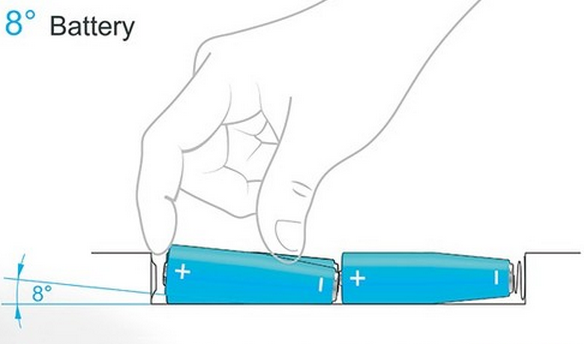 為了解決這樣的問題,有設(shè)計師為我們帶來了一款非常有創(chuàng)意的電池,讓大家再也不會出現(xiàn)剛才所說的尷尬情況了。從圖片中可以看出,這款電池在頂部和傳統(tǒng)電池有著很大不同點,電池頂部為漸進式設(shè)計,這樣就帶來了約為8度的傾斜角。如此一來,大家在放置電池的時候,就不會出現(xiàn)電池難以取出的情況,為我們帶來了方便。