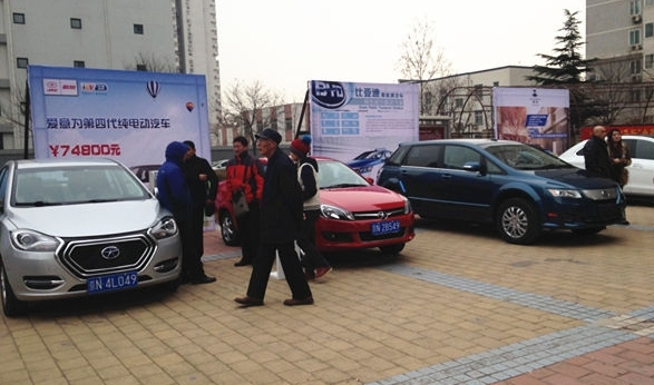1月25日,在北京市發(fā)改委、科委、經(jīng)信委、交通委、住建委以及財(cái)政局等部門支持和指導(dǎo)下,由北京新能源汽車產(chǎn)業(yè)協(xié)會(huì)、北京新能源汽車發(fā)展促進(jìn)中心共同主 辦的“北京藍(lán) 我先行”電動(dòng)汽車進(jìn)社區(qū)系列活動(dòng)在首鋼金頂街五區(qū)居民小區(qū)正式啟動(dòng)。在活動(dòng)現(xiàn)場(chǎng),可享受北京市新能源汽車單獨(dú)搖號(hào)和補(bǔ)貼政策的北汽新能源(E150EV、 C70GB、EV200、ES210、M307多功能乘用車)、上汽(榮威E50)、華晨寶馬(之諾1E,只租不賣)、比亞迪(E6)、騰勢(shì)、長安逸動(dòng) EV、東風(fēng)日產(chǎn)(晨風(fēng))、江淮(iEV4、iEV5)、奇瑞(eQ)等9家車企14款純電動(dòng)汽車產(chǎn)品齊齊亮相,供用戶選擇,現(xiàn)場(chǎng)還有專業(yè)技術(shù)人員講解,與 社區(qū)居民互動(dòng),答疑解惑。