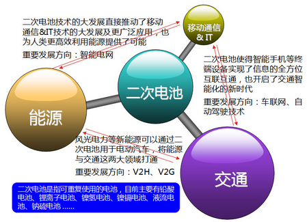 圖1:以鋰離子電池為代表的二次電池技術(shù)的大發(fā)展,使移動通信&IT、交通、能源這三大