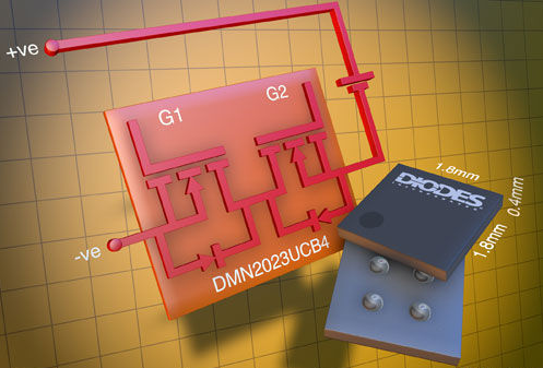 DMN2023UCB4的RSS(on) 少於26mΩ,旨在以最低的導(dǎo)通電阻來減低功耗。此外,其雙N通道共汲極配置特別適合一般使用低側(cè)電池開關(guān)的充電電路,從而滿足單電芯及雙電芯鋰電池的要求。至於要求高端連接的應(yīng)用,Diodes公司也推出了DMP2100UCB9,提供雙P通道共源MOSFET設(shè)計。