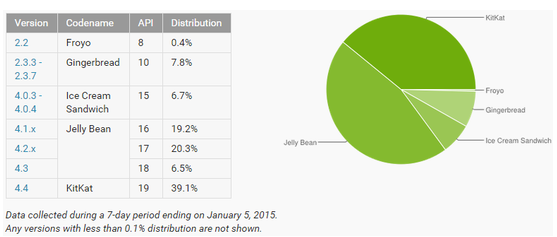 2月3日消息,據(jù)國(guó)外媒體報(bào)道,谷歌周一更新了Android版本分布圖。最新版的Lollipop終于在上月呈現(xiàn)加速增長(zhǎng),且增勢(shì)壓過(guò)4.4 KitKat的風(fēng)頭。KitKat是在一月到二月期間,除了Lollipop外,唯一仍保持份額上漲的舊版本。