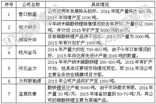 以上7家企業(yè)2015年新增磷酸鐵鋰產(chǎn)量總計(jì)大約在7000-8000噸,由于統(tǒng)計(jì)口徑有限,還有未公布的新增廠家數(shù)量。