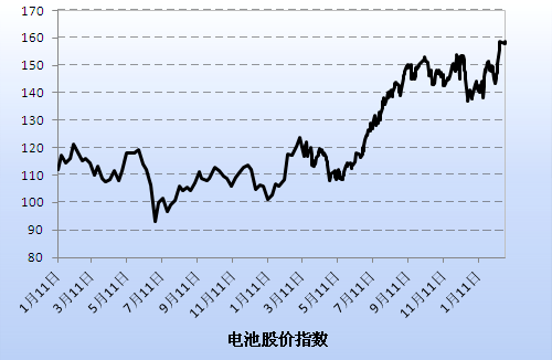 ●指數(shù)以2011年年終收盤日為基日,設(shè)為100點。指數(shù)的漲跌基本可以反映電池行業(yè)的整體趨勢,供大家參考。