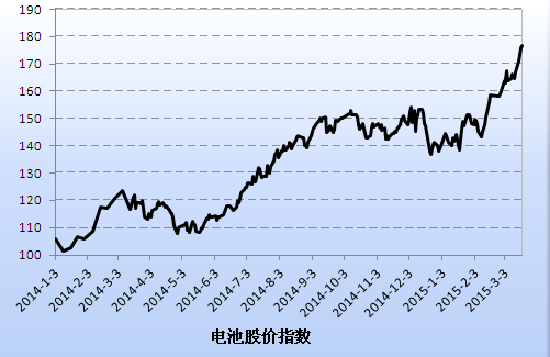 ●指數(shù)以2011年年終收盤(pán)日為基日,設(shè)為100點(diǎn)。指數(shù)的漲跌基本可以反映電池行業(yè)的整體趨勢(shì),供大家參考。