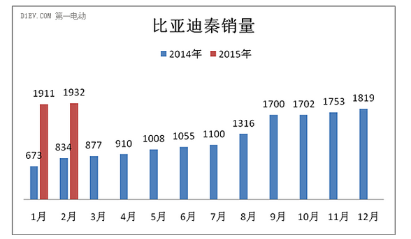 比亞迪官方數(shù)據(jù)顯示:插電式混動(dòng)車(chē)型秦2015年1月銷(xiāo)售1911輛,2月銷(xiāo)售1932輛。據(jù)比亞迪相關(guān)負(fù)責(zé)人介紹,3月的數(shù)據(jù)還在統(tǒng)計(jì)中,總體上比亞迪秦將以超過(guò)3成的比例占據(jù)新能源汽車(chē)市場(chǎng)份額。