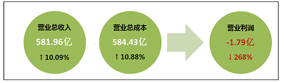 雖然營收增速正常,但由于營業(yè)總成本增長10.88%,營業(yè)利潤反而虧損約1.79億元,同比下滑268%。