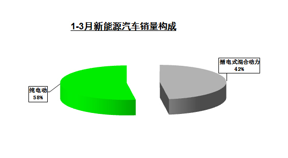 1-3月,新能源汽車生產(chǎn)27271輛,銷售26581輛,同比分別增長2.9倍和2.8倍。其中純電動(dòng)汽車產(chǎn)銷分別完成16113輛和15405輛,同比分別增長3.8倍和3.7倍;插電式混合動(dòng)力汽車產(chǎn)銷分別完成11158輛和11176輛,同比增長均為2.1倍。