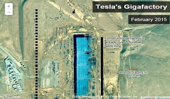 早在 2013 年,Elon Musk 在接受福布斯采訪的時候就提到,特斯拉將建造一家電池工廠,用來不但用來為自己提供鋰電池,壓低成本,同時還可以為其他廠商提供鋰電池。Elon Musk 稱,這將是一個龐大的建筑物,將可以媲美全球所有的鋰電池工廠。而工廠在去年 7 月動工之后一直沒有向外界展示一點樣貌,最近,開源地理空間平臺 CartoDB 和商用高分辨率地球影像產(chǎn)品和服務(wù)全球供應(yīng)商 DigitalGlobe 日前就結(jié)合自己所獲取的信息為了提供了一張特斯拉超級電池工廠的衛(wèi)星可視化預(yù)覽圖。