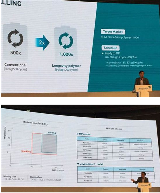 除了在720p生產(chǎn)線上生產(chǎn)2K屏的黑科技之外,三星還在本次電子研討會(huì)上公布了高能量密度手機(jī)電池計(jì)劃,來看看分析師孫昌旭的介紹吧。