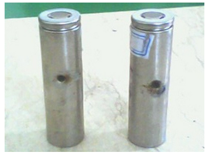 測(cè)試條件:將18650電芯充滿電,用φ3mm的鋼釘從垂直于電池縱面的方向貫穿(鋼針停留在電池中1min),不起火不爆炸可判為合格。