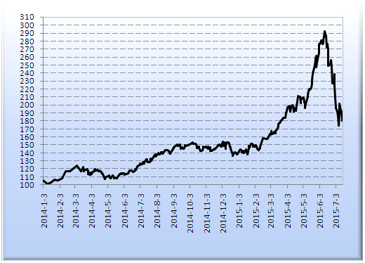 15日電池股價指數(shù)收180.59,環(huán)比下跌5.88%。今日指數(shù)低開低走,震蕩下行。上證指數(shù)下跌逾100點(diǎn),險守3800點(diǎn),超千股跌停。鋰電股今小幅低開,但在午后大幅跳水,收盤跌幅近6%。停牌近一個月后,駱駝股份(601311)今日公布非公開發(fā)行方案,公司擬以不低于25.29元/股的價格定增不超過8000萬股,募資總額不超過20億元加碼新能源汽車產(chǎn)業(yè)鏈。值得注意的是,從定增所投項目可見,公司在鞏固鉛酸電池主營基礎(chǔ)上,開始發(fā)力動力型鋰電池領(lǐng)域。